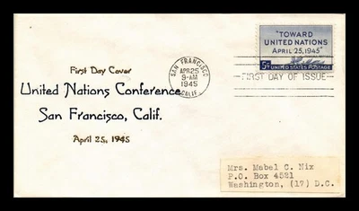 US COVER UNITED NATIONS CONFERENCE SAN FRANCISCO FDC SCOTT 928 THERMOGRAPHED