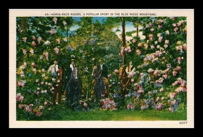 LINEN POSTCARD HORSE BACK RIDERS A POPULAR SPORT IN THE BLUE RIDGE MOUNTAINS