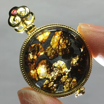 47.15Ct Rare Pallasite Meteorite Pendant Brenham Meteorite Necklace
