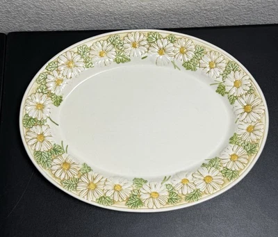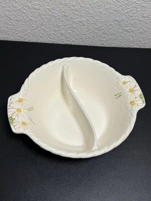 Vintage Metlox Poppytrail Sculptured Daisy Oval Serving Bowl with Handles 8”