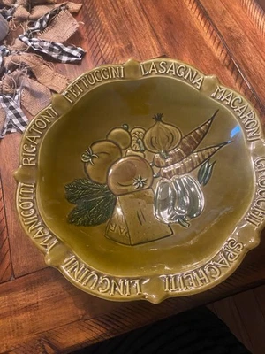 Vintage Green Los Angeles Potteries Large 14.25 inch Pasta Bowl #300 No Chips