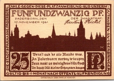 Dr Jim Stamps Banknote Paderborn Germany Notgeld 25 Pfennig