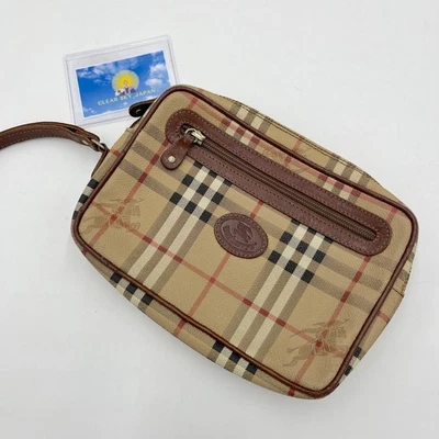 Burberrys Clutch Bag second bag Nova Check PVC Leather Beige Brown logo Good