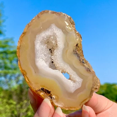 116G AAA Grade Natural Beautiful Yellow Agate Geode Druzy Slice Extra Large Gem
