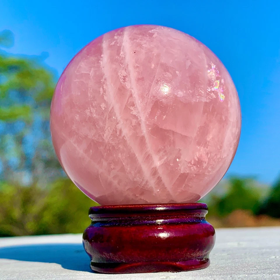 173G Natural Pink Rose Quartz Sphere Crystal Ball Decor Reiki Healing