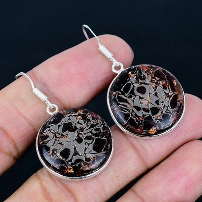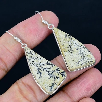 Psilomelane Dendritic 925 Silver Plated Handmade Earrings of 2.21"