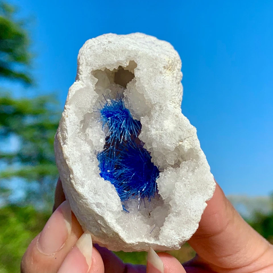 93G Rare Moroccan Blue Magnesite and Quartz Crystal Coexisting Specimen
