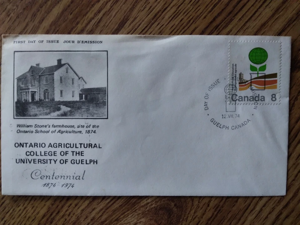 CANADA FDC 1974 UNIVERSITY OF GUELPH CENTENNIAL FLAWS