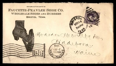 Mayfairstamps US 1918 Bristol TN to Biddeford Maine Faucette Peavler Shoe Co Adv