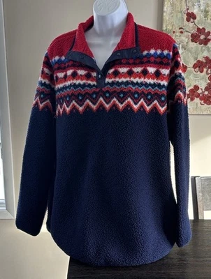 Womenās L Landās End Fleece Quarter Snap Pullover Blue Red