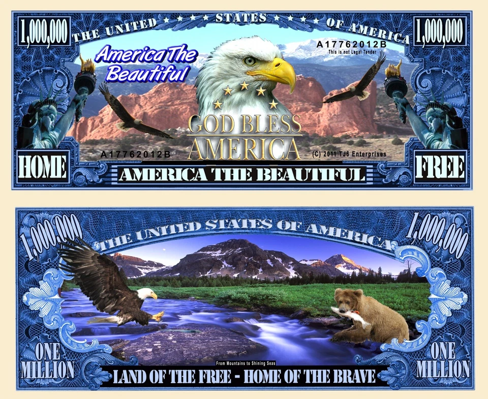 America The Beautiful Novelty Dollar Bill comes In Free Soft Polly Sleeve