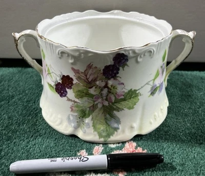 Wellsville Ohio Pottery (BLACKBERRY MOTIF DESIGN)scalloped Edges Bowl(6”x4”)