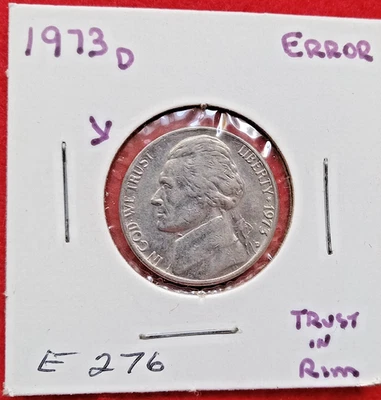 Error Coin E-286 Jefferson Nickel 1973-D Trust in Rim
