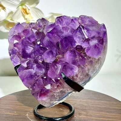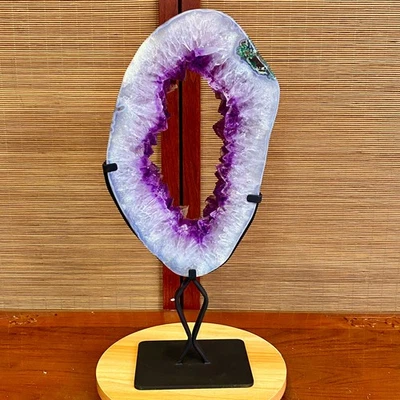 10.03LB Natural Amethyst Cave Crystal Slice Crescent shaped Hand Cut Repai