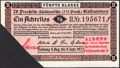 29. Preußisch-Süddeutsche Klassen-lottery 1927 - Series: 195671f- #C39
