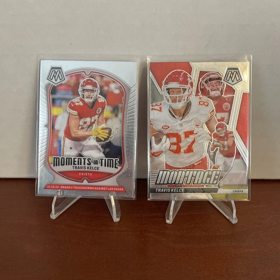 Lot (2) Travis Kelce 2024 Mosaic Base Inserts Moments In Time & Montage