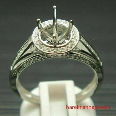 Round Halo Semi Mount 1.25 Ct Lab-Created Diamond Ring Setting 14K White Gold FN