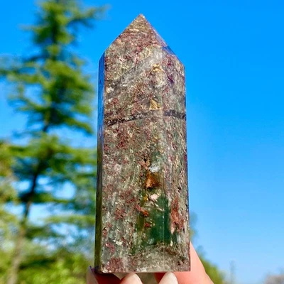 148G Natural Green Ghost Phantom Crystal Tower Point Obelisk Chakras Healing