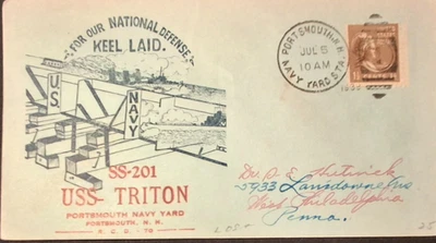 US Navy postal cancelation stamp U.S.S TRITON Portsmouth Navy Yard July 5th 1939