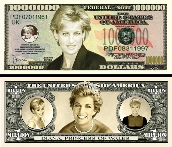 Princess Dianna Novelty Dollar Bill comes in a Free Soft Polly Sleeve
