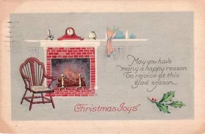 A MERRY CHRISTMAS TO YOU MY GREETING - FIREPLACE - OLD POSTCARD