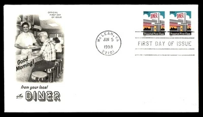 Mayfairstamps US FDC 1998 Virginia pair diner presorted first-class art craft Fi