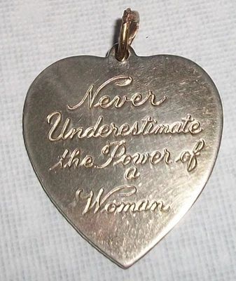 Vtg "Never Underestimate the Power of a Woman" Heart Charm