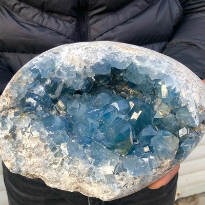 11LB natural blue celestite geode quartz crystal mineral specimen healing