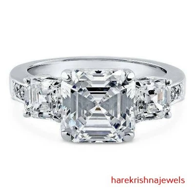 3.50 Ct Asscher Cut 3-Stone Lab-Created Diamond Ring 925 Sterling Silver Wedding