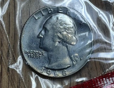 1968 D Washington Quarter BRILLIANT COIN UNC /MINT SEALED IN CELLO GEM