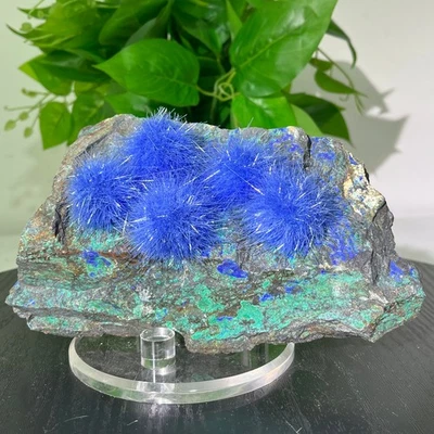 2.73LB Beautiful and rare blue needle mineral home decoration