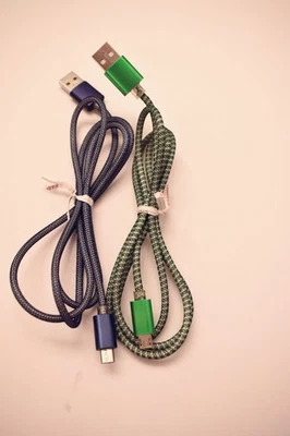2 Micro USB Braided Cables, Blue & Green