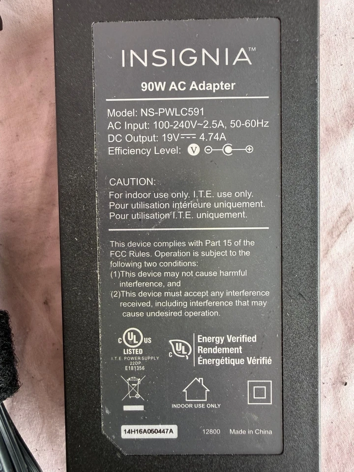 INSIGNIA NS-PWLC591 E AC 90W ADAPTER 100-240V 2.5A 19V 50-60Hz, 4.74A