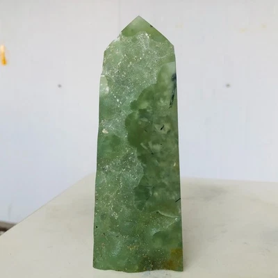 615g Natural Green Chalcedony Grape Agate Tourmaline Crystal Obelisk AK216