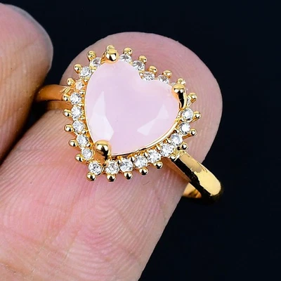 Pink Chalcedony Gold 925 Silver Plated Handmade Ring of US Size Adjustable