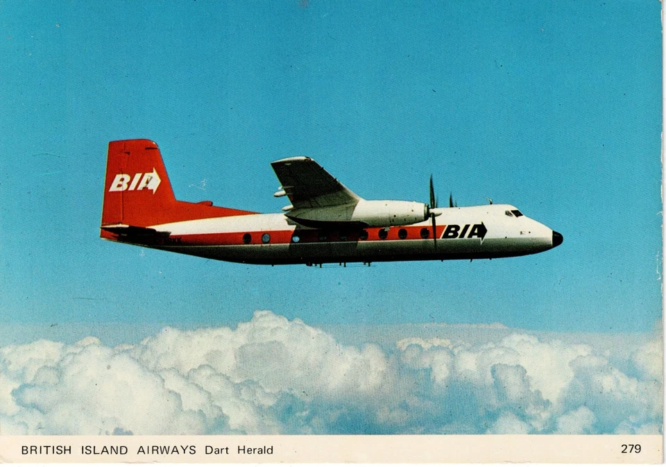 Postcard, Aircraft in Flight, British Island Airways, Dart Herald Jetliner (N)