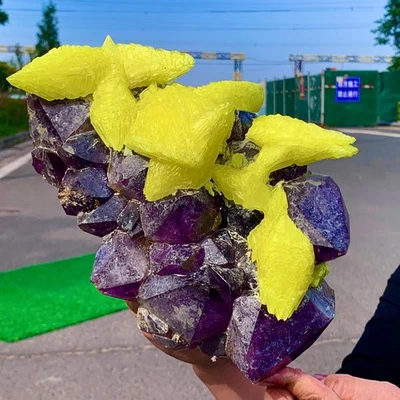 10.5LB Minerals ** LARGE NATIVE SULPHUR OnMATRIX Sicily With+amethyst Crystal