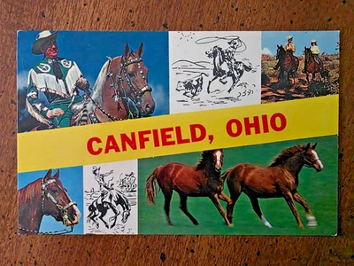 VINTAGE POSTCARD VIEW OF HORSES, CANFIELD, OHIO, 1950'S