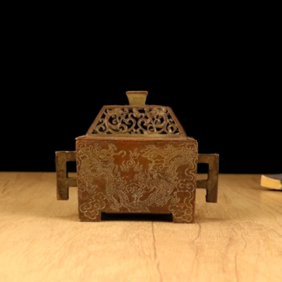 740g Ancient Chinese Handcrafted Brass Exquisite incense burner statues gift s60