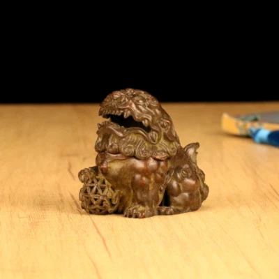 210g Ancient Chinese Handcrafted Brass Exquisite lion incense burner statues 20