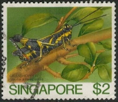 Lot 4620 Singapore 1985 $2 Insect (Grasshopper) used stamp