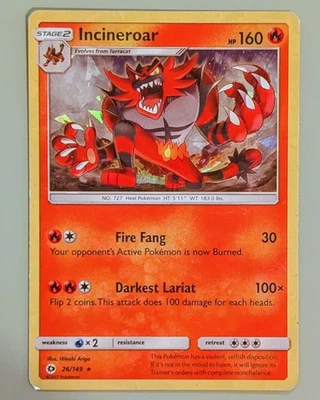 Incineroar (Cracked Ice Holo) - Sun & Moon 26/149 Holo Rare - LP- - Pokemon TCG
