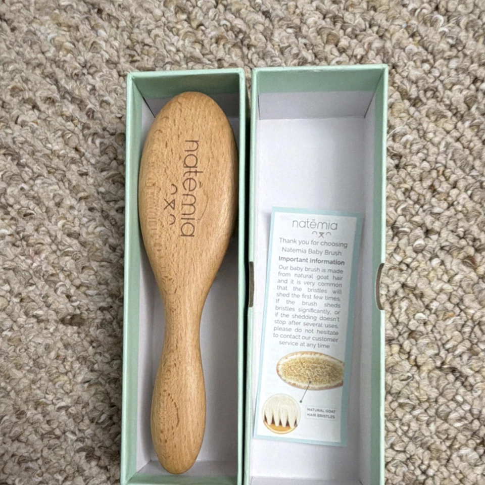 Natemia Baby Wooden Hair Brush Natural Goat Bristles Beige Brown