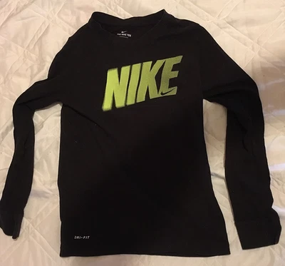 Nike Dri-Fit long sleeve logo tee, little boy size S, black cotton/polyester