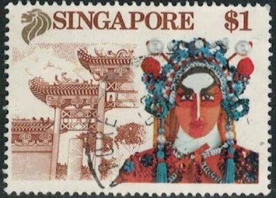 Lot 4629 Singapore 1990 $1 Tourism (Chinese Opera Singer) used stamp