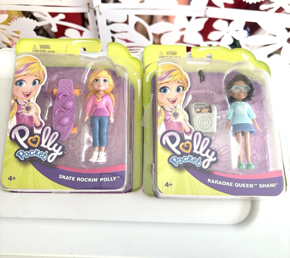 2 Polly Pocket Skate Rockin Polly / Karaoke Queen Shani +Accessories Miniature *