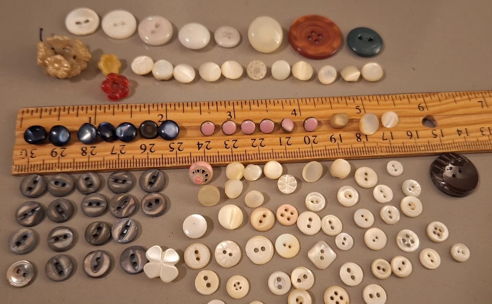 Vintage 132 Buttons Assorted Materials Sizes and Styles (includes 1 Glower)
