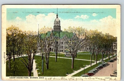 S06-2473, COURT HOUSE PARK, WARREN, OHIO, 1920S PMKED, POSTCARD