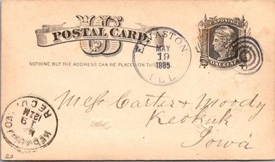 GOLDPATH: US EARLY POSTAL CARD 1885 ELVASTON,IL.TARGET CANCEL. CV880_P19
