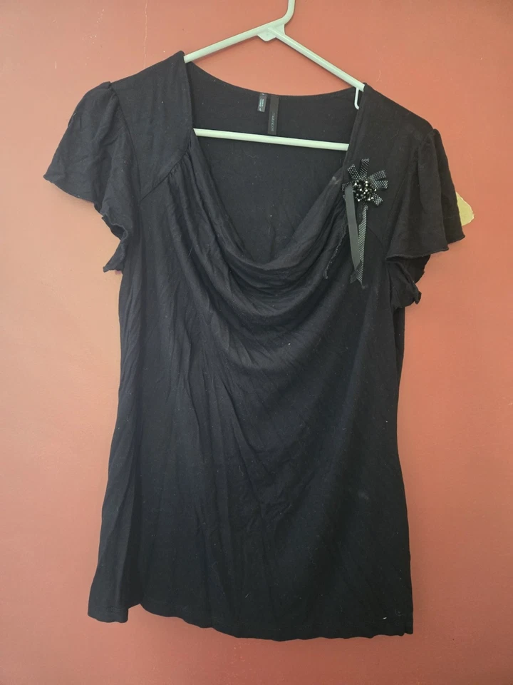 Women's Black Short Sleeve Dressy Top with Flower